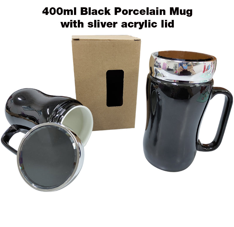 18-447 400ml Black Porcelain Mug with sliver acrylic lid