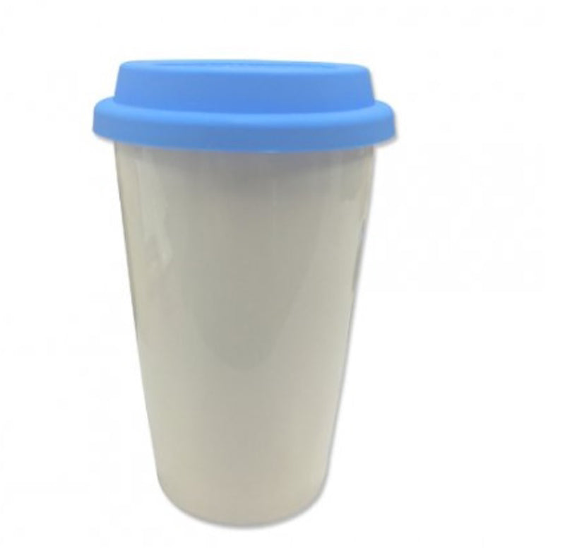 18-366 Double Wall Ceramic Mug with Coloured Silicon Lid
