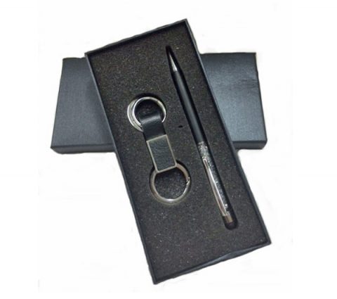 18-315 PU Leather Keychain with Crystal Metal Pen Set