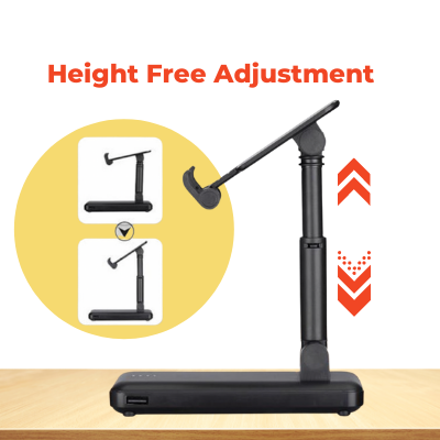 Free to adjust the height and GOOD NEWS! You can charge 4 devices at the same time so the call will never end!